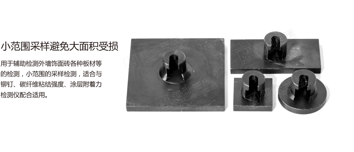 用于輔助檢測外墻飾面磚各種板材等的檢測,小范圍的采樣檢測,適合與鉚釘、碳纖維粘結(jié)強度、涂層附著力檢測儀配合使用。